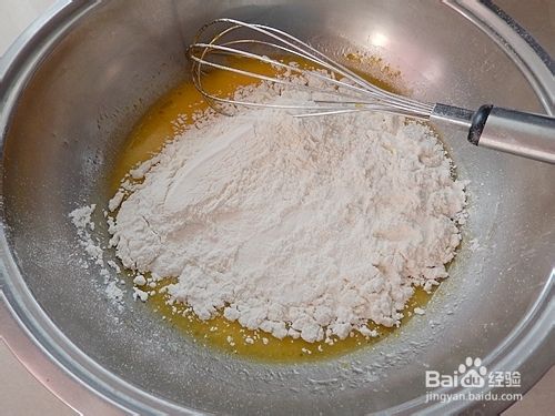 加入过了二次筛的低筋面粉,拌匀。