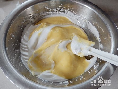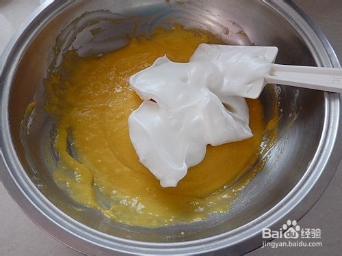 取三分之蛋白加入蛋黄糊中。