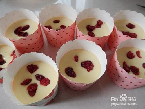 装入纸杯,八分满,放入蔓越莓干。