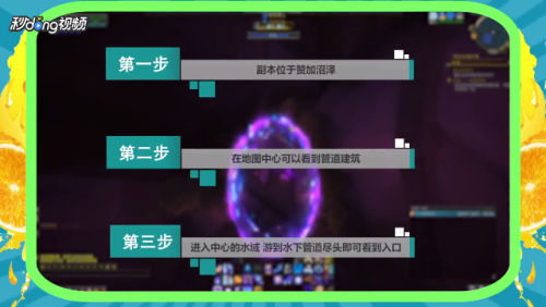 在管道中心水域进入中间的大管道,游到尽头即可看到副本入口。