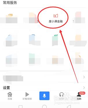 打开后,下拉菜单,在常用服务中找到度小满金融,点击打开。