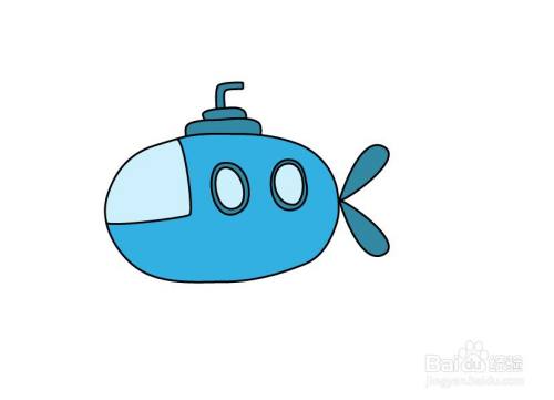还可以用深色的水彩给它涂上阴影,这样潜水艇会更加立体。