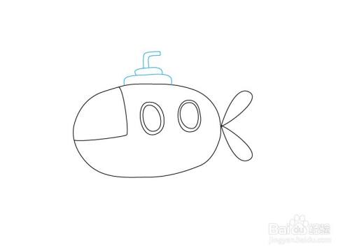 画出潜水艇上方的瞭望镜。这样铅笔底稿就画好了