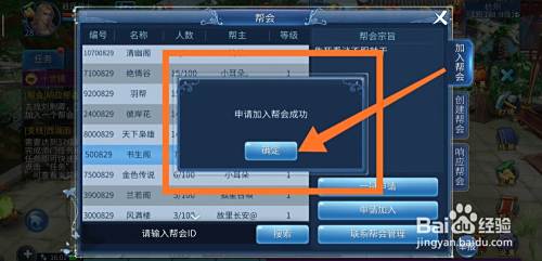 第六、出现“申请加入帮会成功”的界面,点击下方的确定,就已经将申请发送到该帮会了,等待该帮会通过。