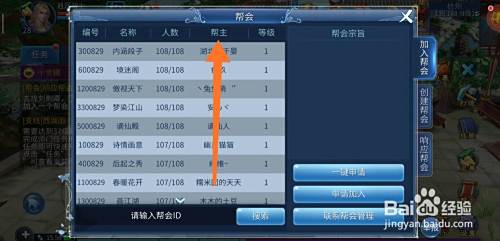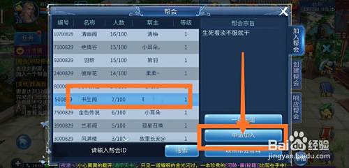 第三、之后会出现加入帮会的界面,在左侧则是众多帮会的信息,可供选择,上滑可寻找想要加入的帮会;