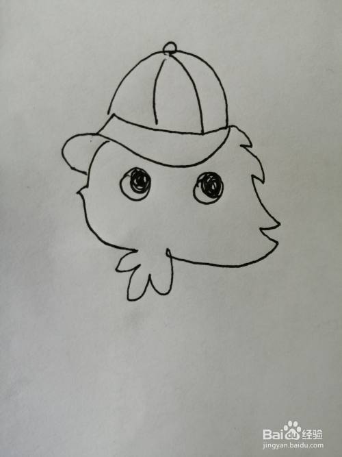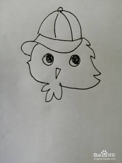 第四步,接着继续画出可爱的小鸡的尖尖的小嘴巴。