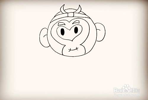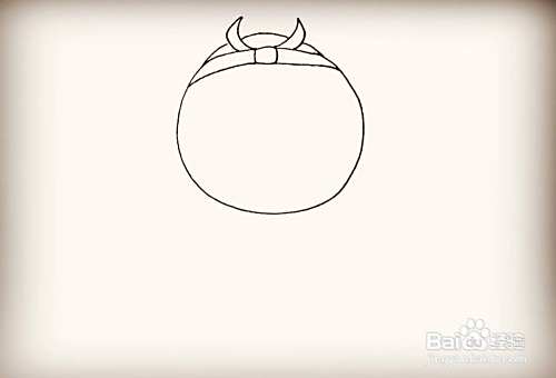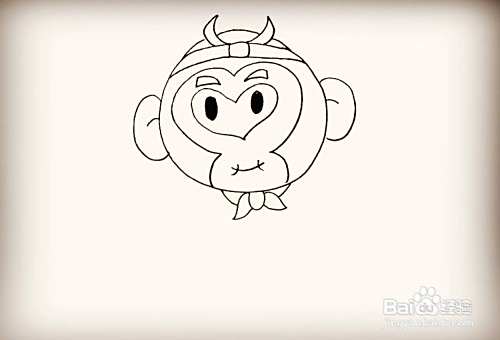 先画一个圆做孙悟空的头。然后画它的头箍。