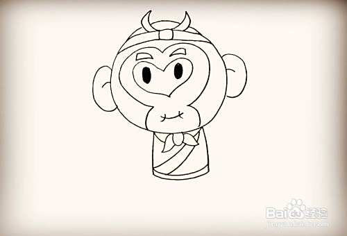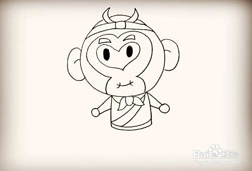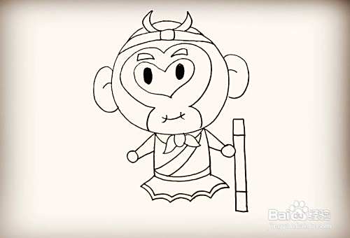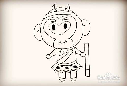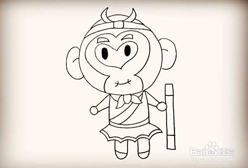 11.在裙子上画上黑色的小圆点做装饰。那孙悟空就画好了。