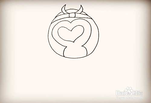 2.然后脸上画一个大爱心,爱心里面画一个小爱心。