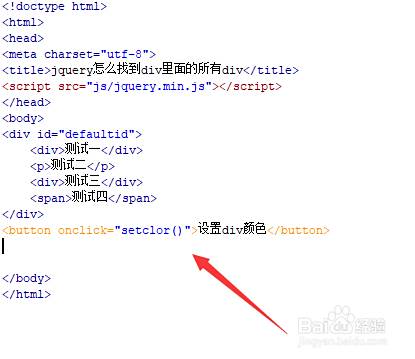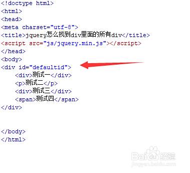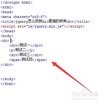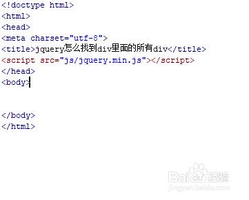 新建一个html文件,命名为test.html,用于讲解jquery怎么找到div里面的所有div。
