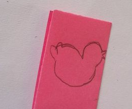 先在折好的纸上画上一只的身体,还有头和尖尖的嘴巴,嘴巴那里是相连的