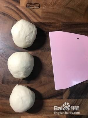 分成三等份,每个约50克左右。 然后我开始混合红糖和猪油。因为早上温度不高,混合馅儿的时间短,我就没有遮盖面团。可以放密封容器也可以盖保鲜膜,防止面团表面风干。