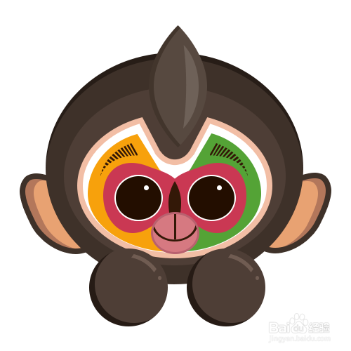 6.白色面搓细条、果酱面20克面,做猴头、30克面做猴身、7.用白色细面条。做出猴子的脸轮廓8.用紫色果汁面、做出整个福字