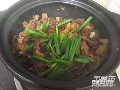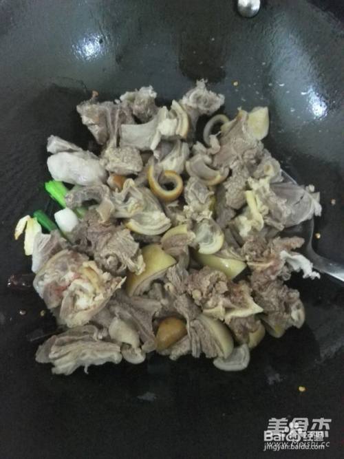 6羊腩煸炒至皮有些微焦即可关火