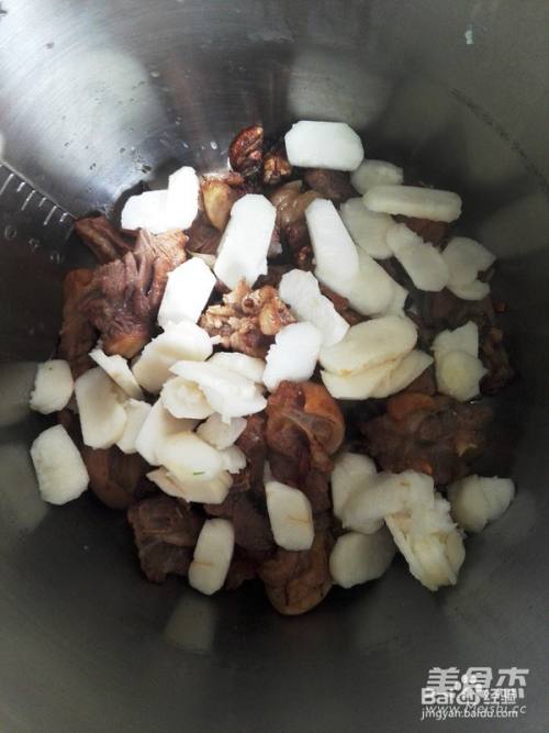 7把羊腩放入高压锅中,放入切片的荸荠