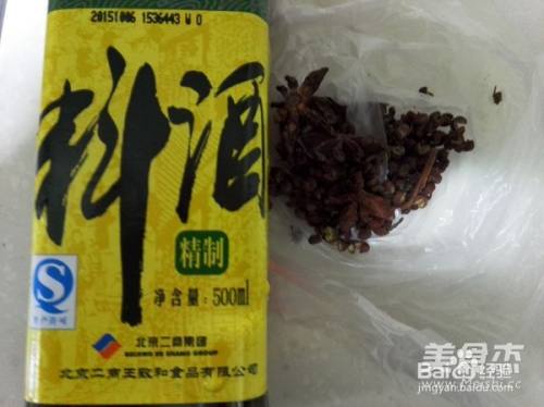 1准备好料酒和八角、花椒,这些佐料能很好的去掉羊的腥膻味