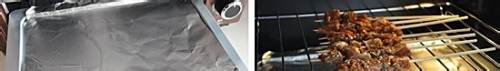 烤箱预热220度,把串好的羊肉放到烤架上,接渣盘上铺上锡纸,烘烤15分钟即可