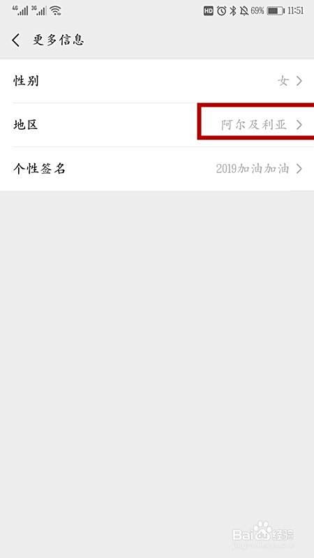 然后点开自己的个人信息,在最底部看到了以前填好的地址,点击一下。如下图。
