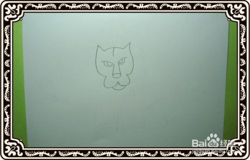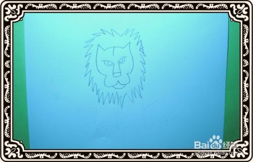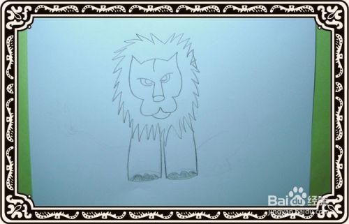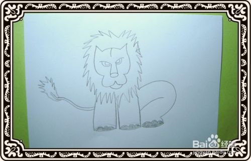 用铅笔在白纸上画出整个画面的草图,画出一只威武的狮子,接着用黑色彩铅笔画出狮子的头的部分出来,如下图所示。