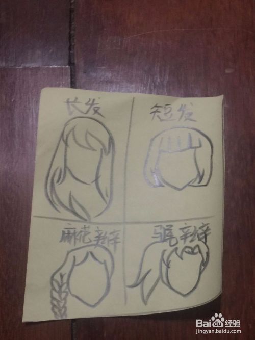 到了-------画头发了!头发的工序比较简单,可以画短发也可以画长发,可以画麻花辫也可以画马尾辫,现在我来向大家一 一作答(如图)