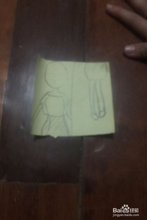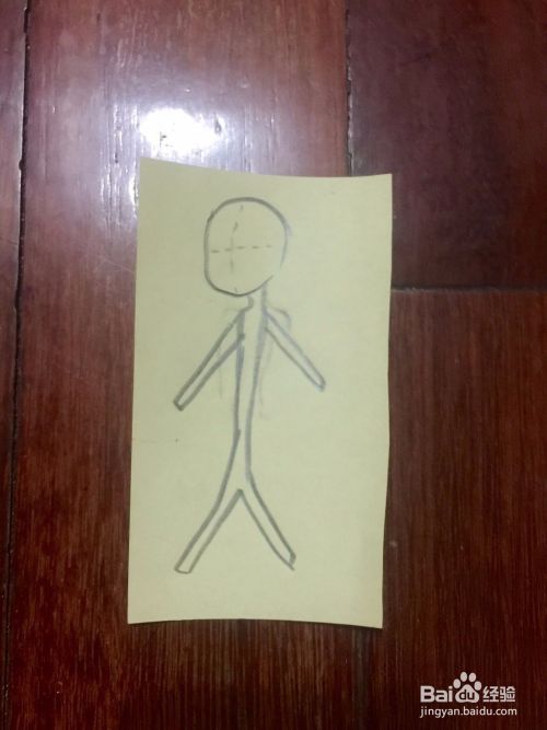 用铅笔画出纸张3分之2的火柴人,身体部分留空