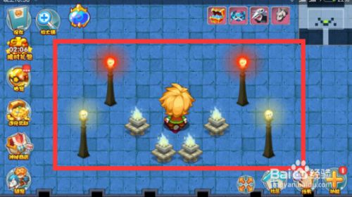 解除所有机关后,顺着通道走,站在4个灯柱中间。