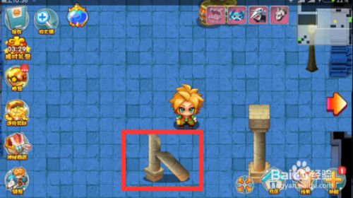 向左走进入左侧房间,如图石柱下为机关,点击即可解除机关。