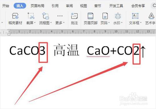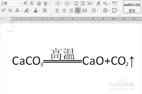 两个下角标调整适当,碳酸钙的分解反应化学方程式输入完成。
