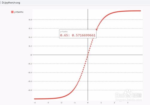 第八步,查看绘制的双曲正切函数图像。注意矢量图是svg文件,可以使用浏览器软件打开。当鼠标放置在图像上,会显示该点的坐标。