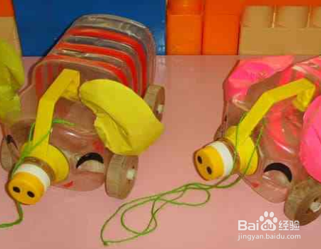 把塑料瓶倒着放,在上面中间处开一个条形孔,硬币能放进去大小,然后在底部分别沾上四个瓶盖,小猪的脚,这样储钱罐就可以站住了,再装饰一下鼻子和眼睛,一个好看又实用的小猪储钱罐就做好了。