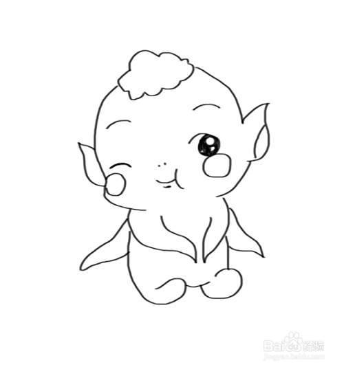 这样,一只可爱的胡巴就画好了。我们来简单涂个颜色。