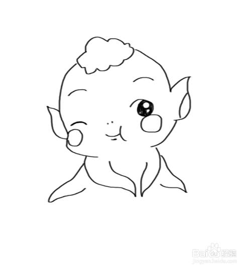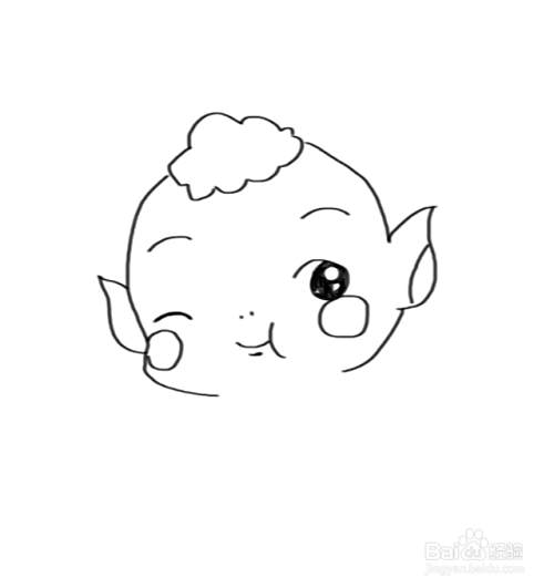 然后画上胡巴胖胖的脸蛋和尖尖的耳朵。