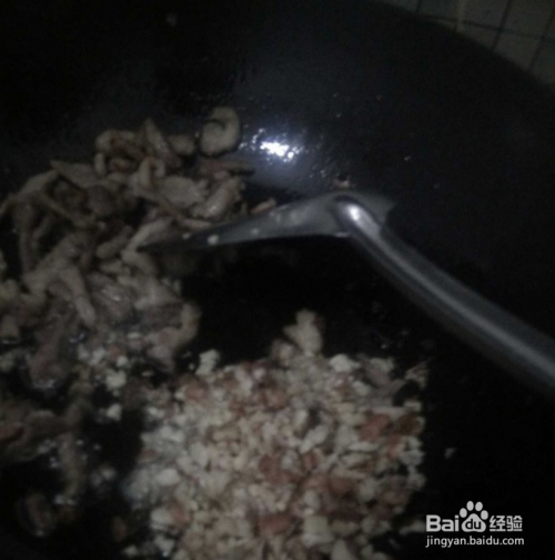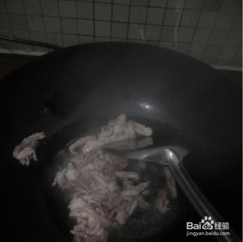 锅中倒入食用油,肉丝入锅,炒至八九成熟