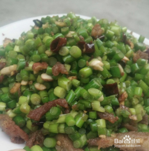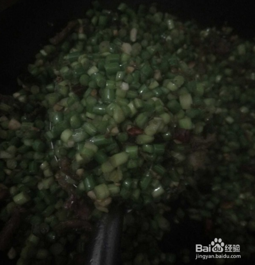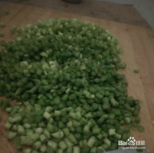 蒜台洗好,把一头齐,切丁,切的薄一些比较好