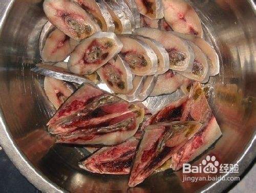 先将用来做熏鱼的巴鱼放到冰箱里冻一下,冻得时间不要太长,刚刚发硬了就可以了,最多1小时。这样切起来比较漂亮。冻过之后再洗、切。注意,洗的时候要将鱼的尾巴剪掉!