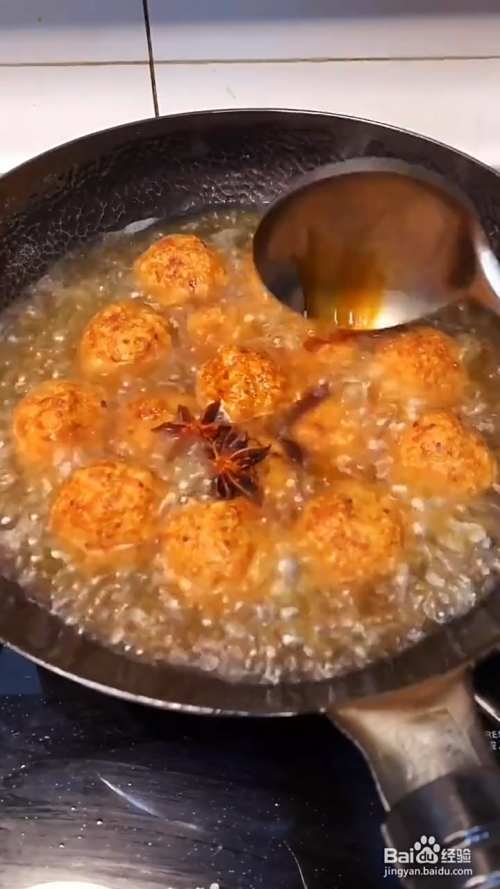 丸子炸熟捞出,放入锅内,加入开水,没过丸子,放入两粒八角、生抽、蚝油,放点鸡精、白糖。小火位置。十五分钟打出里面的料渣。汤里边已经有咸味了,只需要勾个薄芡,最后出锅淋点香油,撒点葱花,红烧狮子头就制作完成。