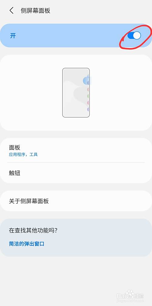 点击【侧屏幕面板】,不要点击后面的开关按钮