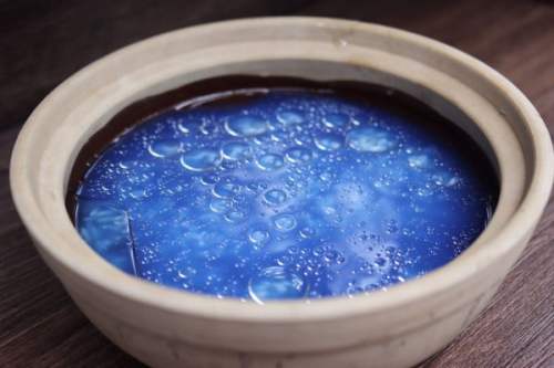 1米洗净,加入250g纯净水,放入洗干净的蝶豆兰干花浸泡1.5小时。