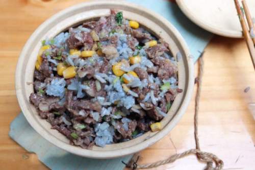 最近玩碳炉玩得挺开心的。所以今天中午就来做个砂锅饭。砂锅饭搭配牛肉很绝配。就是感觉简单了点,所以在米饭上做点功夫,把饭变成蓝色。因为我喜欢肉多,所以牛肉加量了哈。