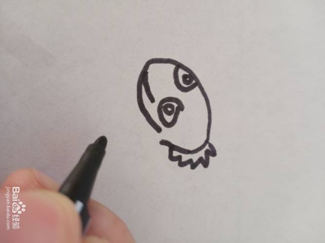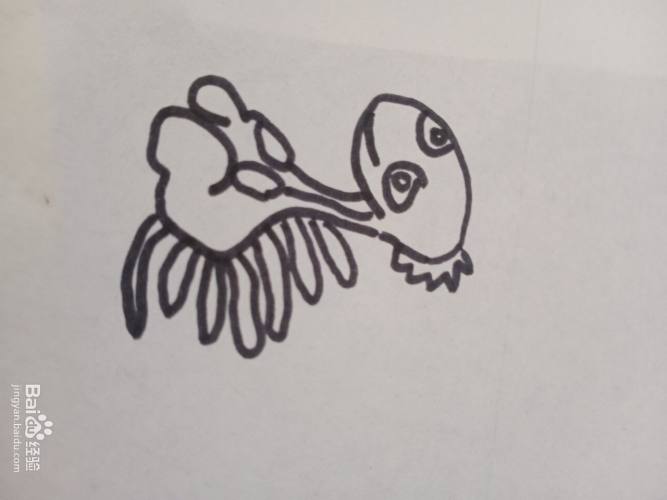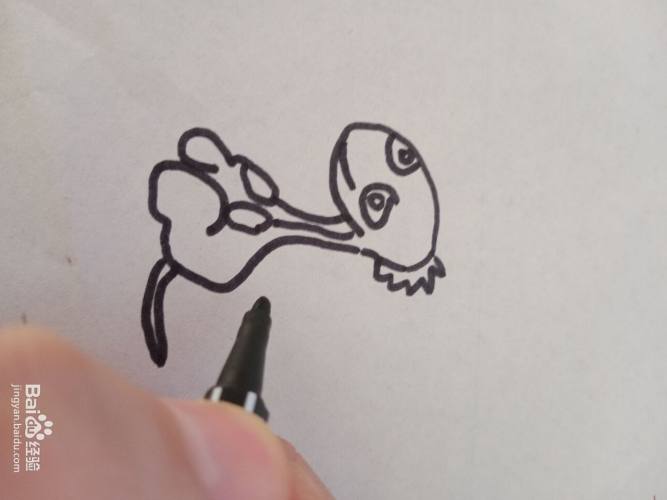 首先画出恐龙的头部。头部画成椭圆形。头部的右侧画一些触角。