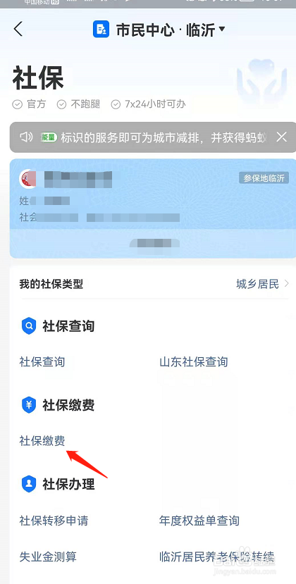 在支付宝的市民服务中找到社保,点击社保缴纳,选择城乡居民即可进行农村合作医疗的缴纳。
