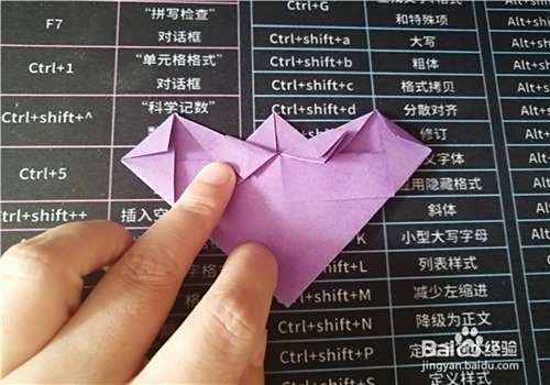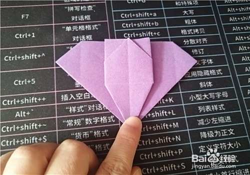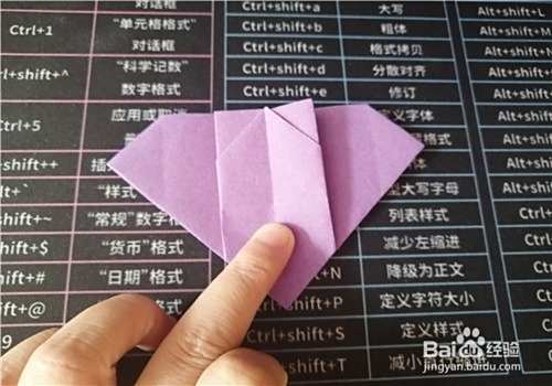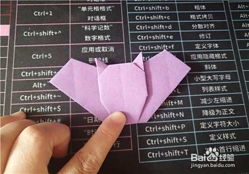 把下面的角翻上去,如图一。再把左右两侧的部分向后折,如图二。然后再把左右两侧的边向后折,如图三。