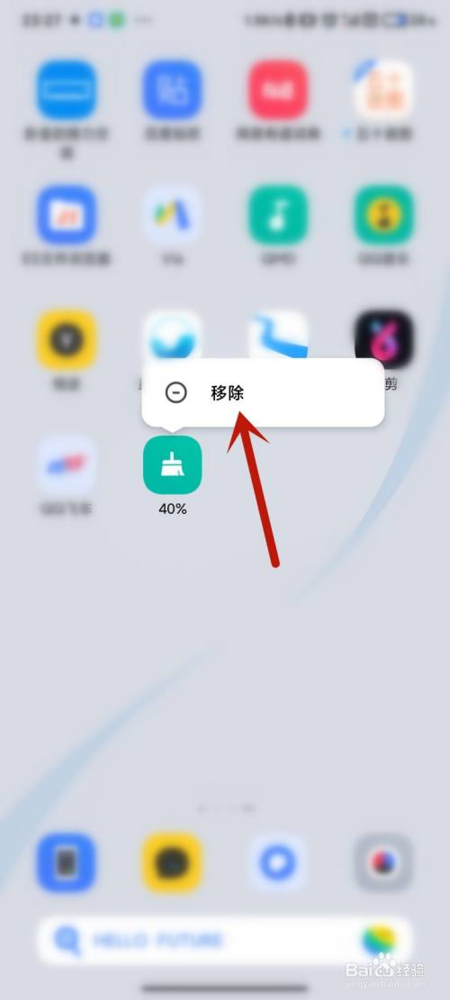 如我们不需要此快捷方式时,点击长按桌面图标“一键清理”,弹出“移除”选项,移除即可。