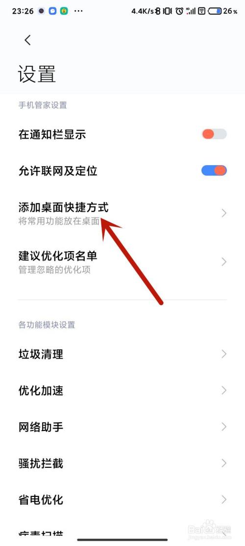 下拉找到“添加桌面快捷方式”点击进入。