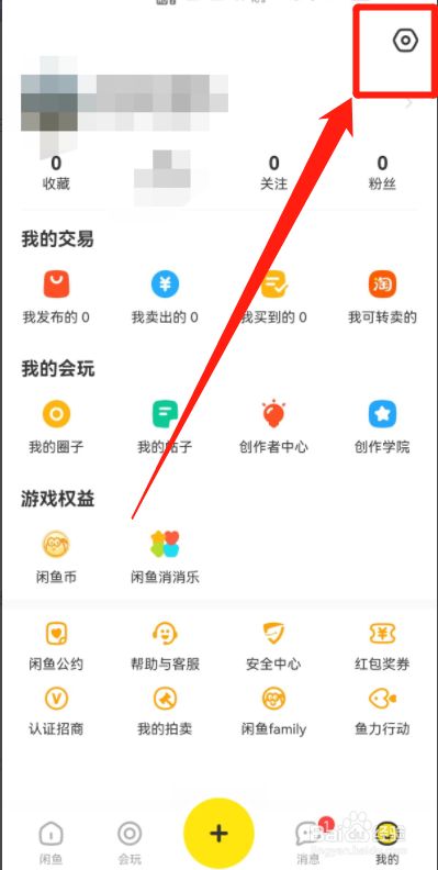 第一步,打开闲鱼,在我的界面,点击右上方“设置”图标