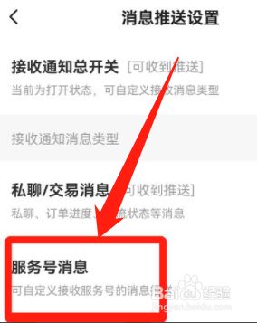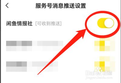 第四步,最后在服务号消息推送设置界面中,将“闲鱼情报社”后方的开关打开即可
