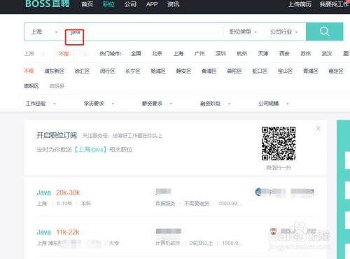 以 java 为主,我们搜索java,之后会出现所有相关的java岗位
