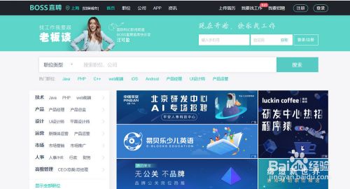 首先再浏览器中搜索boss直聘,点击官网进入相应的页面