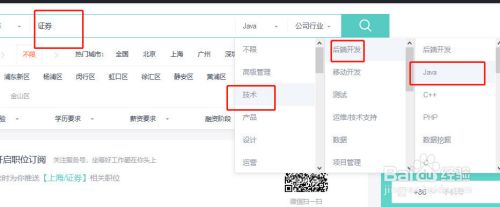 首先职业类型可以选择 java,然后再输入框中输入 证券,点击搜索就可以找到自己想要找的内容