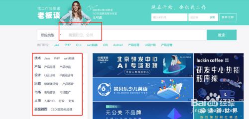 可以再搜索框中搜索自己想要应聘的岗位的关键字,或者在右边选择相应的关键字